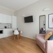 The apartment offers a modern and functional environment with a balcony, perfect for relaxing.